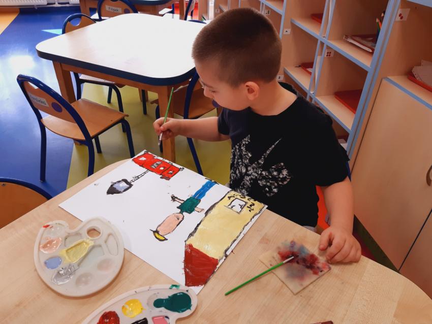 W ramach Narodowego Programu Rozwoju Czytelnictwa, Przedszkole nr 2 "Tęczowa Dwójeczka " w Siemianowicach Śląskich zorganizowało konkurs plastyczny. Zadanie polegało na przedstawieniu postaci z literatury dla dzieci. Wojtuś, nasz grupowy kolega, stworzył obrazek zainspirowany tekstem Cz. Janczarskiego pt. "Jak Wojtek został strażakiem".
